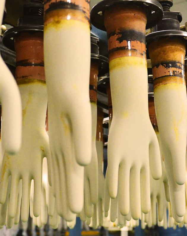 An “auto strip machine” refers to an automated machine used to remove or strip the latex gloves from their molds after the dipping process.